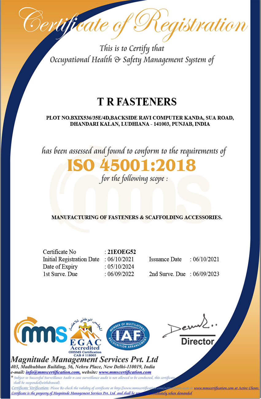 When it comes to quality, TR FASTENERS believes in stringent quality checks at every stage of production making it an integral part of the production process. Regular quality checks are carried out by experienced and highly qualified engineers and inspectors in-house as well as by external agencies.